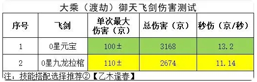 飛劍選擇方面,用0星九龍拉棺和0星元寶進(jìn)行測(cè)試,數(shù)據(jù)如下