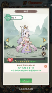 神君功能開放后可以直接解鎖一個神君,這個直接解鎖,把好感度道具全部贈送就行了,可以增加大量戰(zhàn)斗力,同時還有額外的特殊效果,升完級后記得切磋哦,還可以獲得獎勵