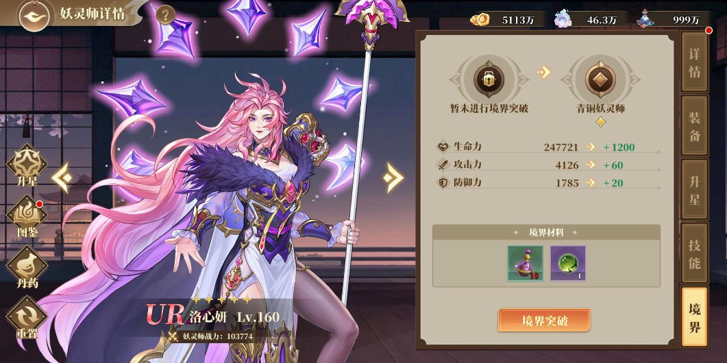 妖靈師可以通過(guò)消耗升級(jí)材料(妖晶幣、龍?jiān)`液)提升等級(jí),而升級(jí)可以提升面板屬性,當(dāng)達(dá)到等級(jí)上限時(shí)可以通過(guò)消耗妖晶幣、龍?jiān)`液和九轉(zhuǎn)丹進(jìn)階等級(jí)上限。不過(guò)前期資源有限,還是盡量避免將養(yǎng)成材料分散給太多角色,練好一隊(duì)主力隊(duì)伍能過(guò)主線才是最重要的。?
