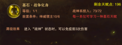 這里是在攻擊與防御101系的大天賦選擇完之后,點出戰(zhàn)神系的終極天賦。