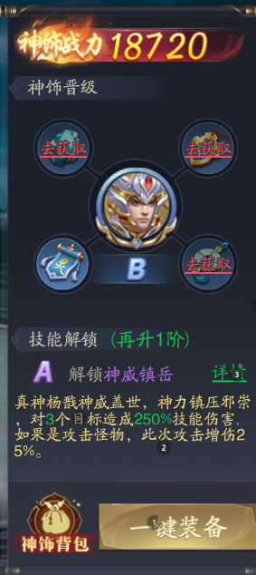 其次就是神飾,能夠提升天神的品級,最初天神都為C級需要自行升品