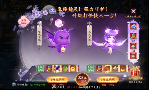 購買后前往商城用鉆石購買限時小精靈,可在合成中合成高階精靈,若元寶不足,可前往"福利-等級禮包"領(lǐng)取獎勵