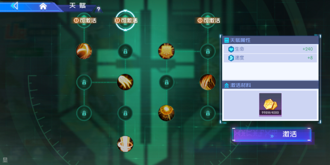 n?激活消耗:消耗對應(yīng)種族的天賦晶石可激活天賦節(jié)點(diǎn)