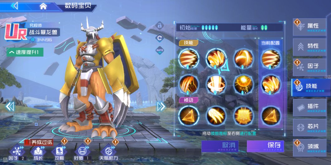l?功能入口:主界面→【數(shù)碼寶貝】→選擇對應(yīng)數(shù)碼寶貝→【養(yǎng)成】→【技能】→【配置】