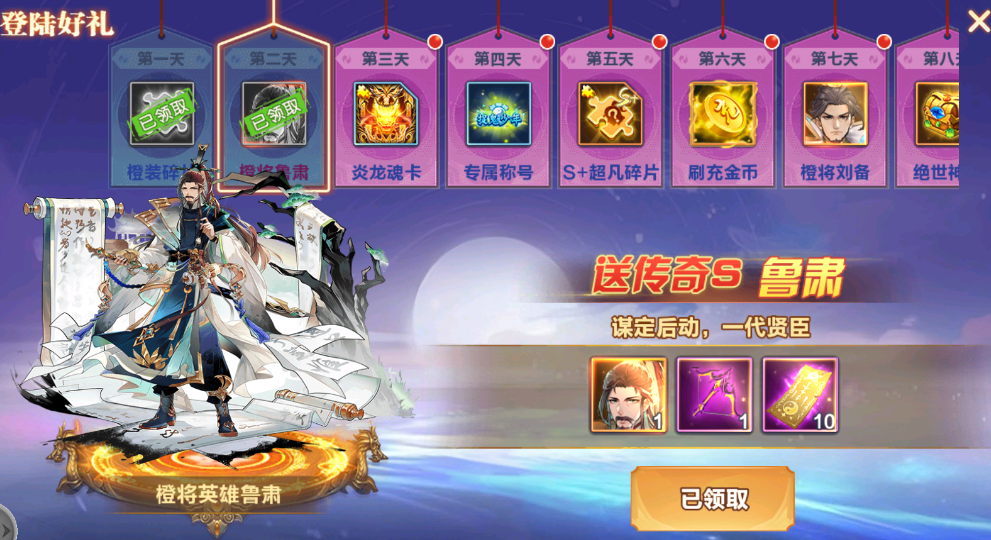 新服登錄活動(dòng),登錄2天送傳奇s英雄魯肅,登錄7天送強(qiáng)力劉皇叔,還有更多的海量福利等你來領(lǐng)?。?/p>