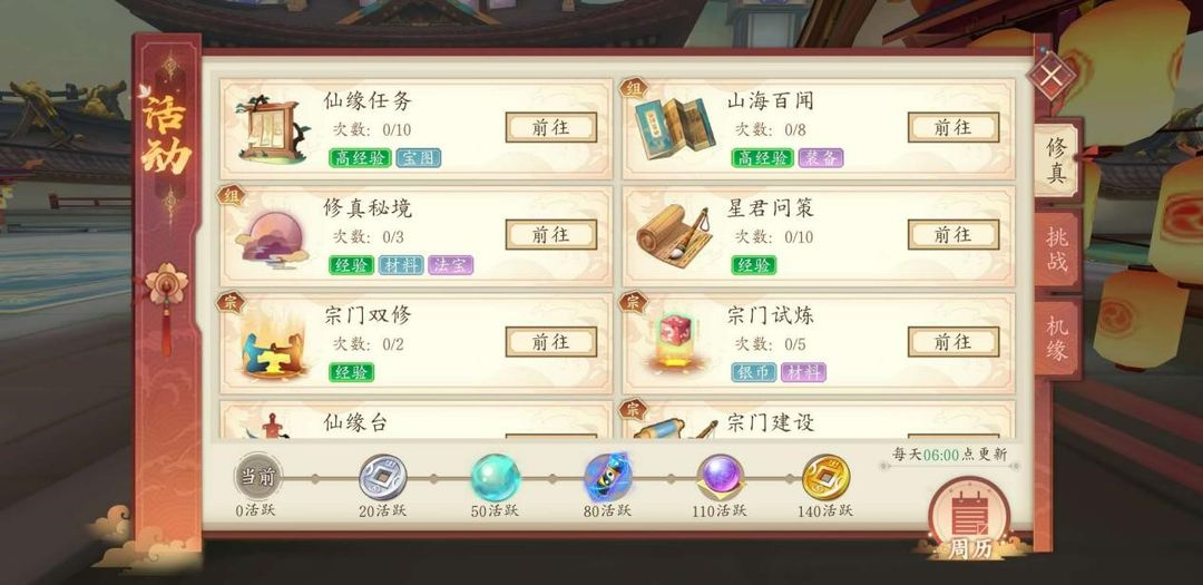修真部分的活動(dòng)難度較低,任務(wù)需要花費(fèi)的時(shí)間較少,獎(jiǎng)勵(lì)也很豐厚,屬于每日必做的活動(dòng)類型。