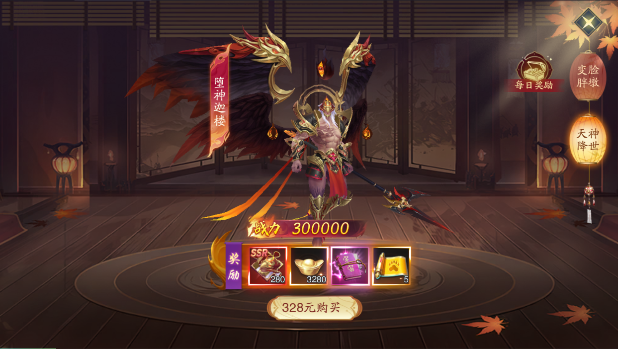 其次就是天神降世以及變臉胖墩兩個(gè)禮包,前期獲取一個(gè)SSR天神以及SSR寵物外觀,這些屬性都是直接加在角色上,而天神能夠讓你前期神擋殺神,平推大部分關(guān)卡,越戰(zhàn)力挑戰(zhàn)也是簡簡單單的