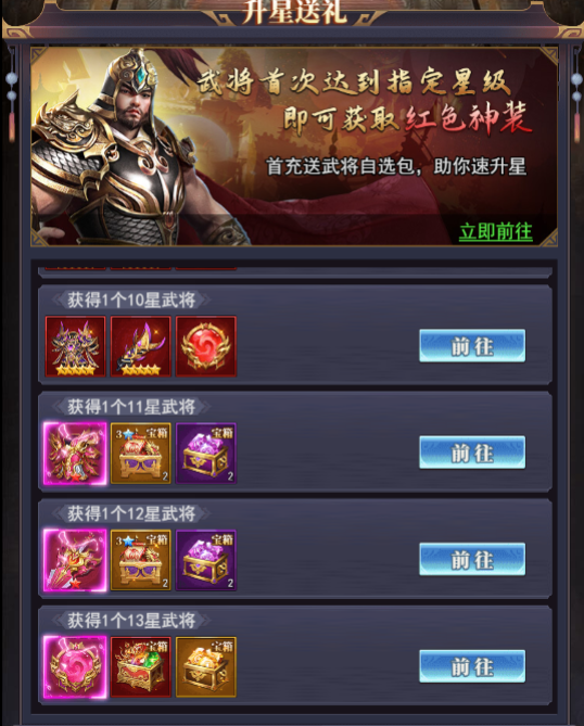 4、武將升星,免費領取紅色神裝和粉色時裝等大量稀有道具豪禮