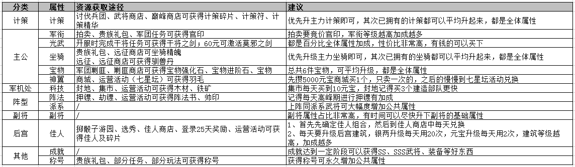 可以通過以下途徑提升公共屬性,即全體武將屬性獲得提升,小編分別列出對應系統(tǒng)及資源產(chǎn)出途徑僅供參考: