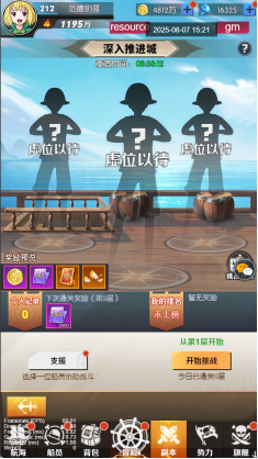 2.?共三個玩家組隊,每個玩家只可出兩名船員,組成6個船員的隊伍進行挑戰(zhàn)