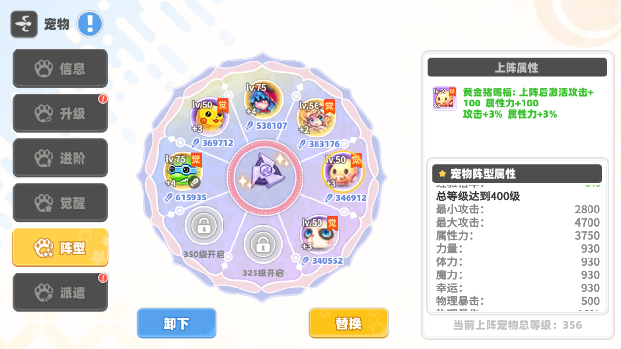 6.寵物陣形屬性根據(jù)所有寵物的整體等級而變