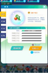 樹果的養(yǎng)成分別有:培育、突破、升星和洗煉。每個(gè)樹果初始都會(huì)帶有一個(gè)初始屬性,經(jīng)過(guò)培育,可以獲得更高的屬性值。突破可以獲得更多的屬性項(xiàng)。