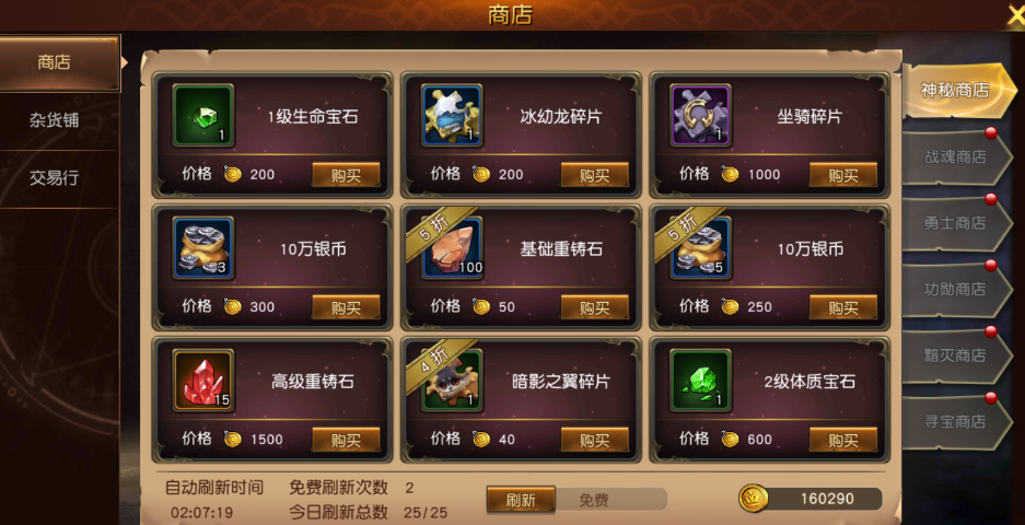 銀幣:銀幣作為游戲內(nèi)功能消耗性道具,銀幣的獲取途徑也幾乎涵蓋了游戲內(nèi)的各大玩法。主線關(guān)卡、世界塔、哥布林副本、競(jìng)技場(chǎng)、團(tuán)隊(duì)副本、遺跡副本,都能獲得銀幣。在雜貨鋪除此之外,在每日的在線活動(dòng),簽到以及活躍度獎(jiǎng)勵(lì)中也能獲取少量銀幣。