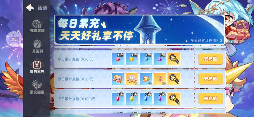 每日累充中,不同檔次都會(huì)送星座鑰匙,每一把鑰匙可以挑戰(zhàn)一次。