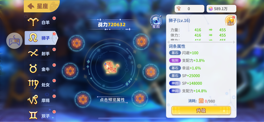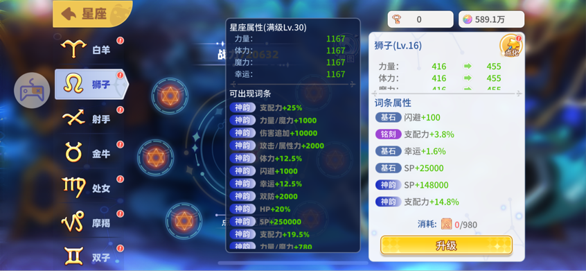 挑戰(zhàn)難度越高,獲得的星方和星象秘語也就越多,星方用來升級(jí)星座等級(jí),星象秘語用來點(diǎn)化星座屬性。