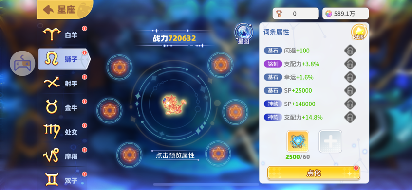 點(diǎn)化建議大家星座等級(jí)到15級(jí)了再去點(diǎn)化,這樣比較節(jié)省星象秘語哦!同時(shí)每個(gè)星座的第一個(gè)詞條就是最好的屬性詞條,如果大家點(diǎn)化到了就可以及時(shí)收手咯(大佬忽略)